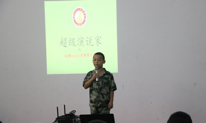 在社交中,口语表达占据着重要的地位。因此,我们注重孩子们表达能力的培养。说什么不重要,说的好不好不重要,这里没有嘲笑!我们首先要锻炼孩子的胆量,只要敢说就成功了一半。给我一个暑假,还你一个大胆自信的小军人!