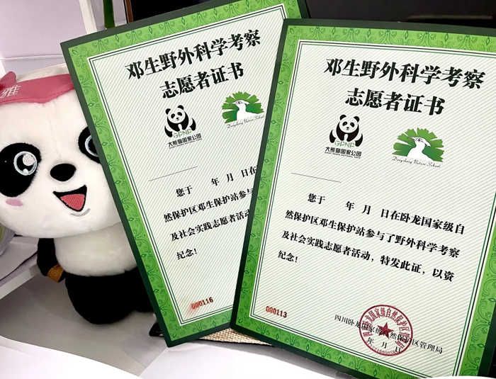 在熊猫志愿者项目结束后,也会获得由中国大熊猫保护研究中心认证颁发的爱心体验者证书,以表彰对保护大熊猫这一珍稀濒危物种及其栖息地作出的特殊贡献。