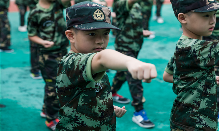 学员进行基础军事会操,激发学员斗志,团队荣誉感,让学员深切感受到自己已经是一个战士,肩负责任与荣誉,在接下来的营程中为荣誉而战!再见妈妈时,誓要挂上荣誉章。